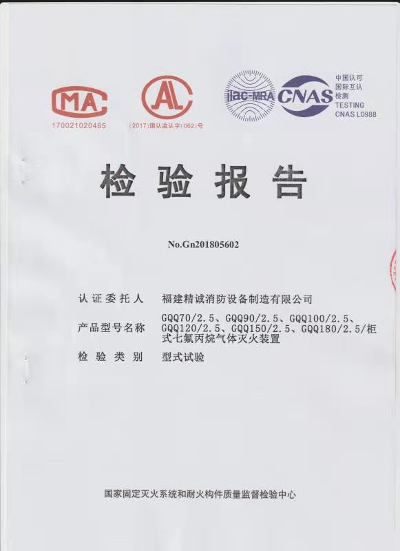柜式七氟丙烷檢驗報告